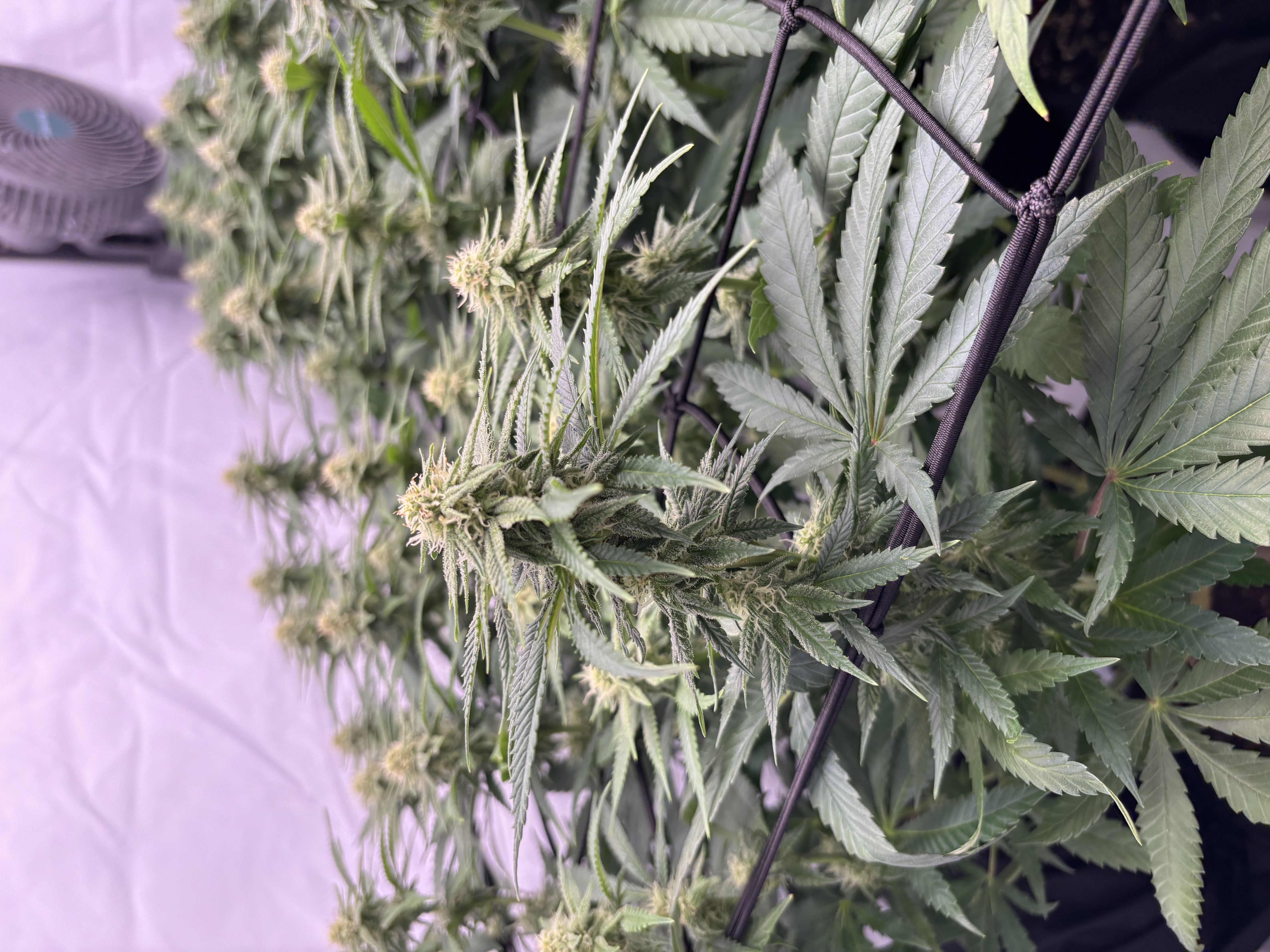 Ogólnie tak zrobiłem przy 3 toppingu wyrównałem je praktycznie na równo .na tych mniejszych urwałem same końcówki a na tych większych skróciłem z 2 piętra ale i tak z biegiem czasu zostały w tyle . Podlewam co 4 dni tak minimum i raz woda z calmag a raz z nawozami na przemian możliwe że ten calmag słaby z biobiza zwiększa dawkę! PH jest około 6.1 a Ec między 1-1,5